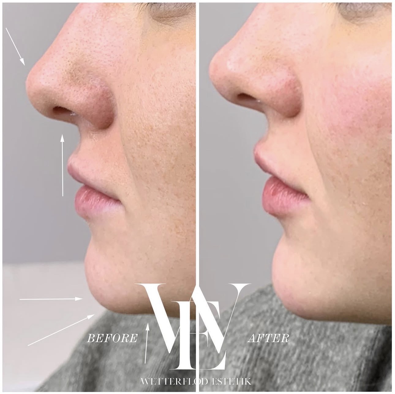 En icke-kirurgisk behandling där CE-märkt hyaluronsyra injiceras för att korrigera mindre ojämnheter, förbättra profil och skapa ökad symmetri.